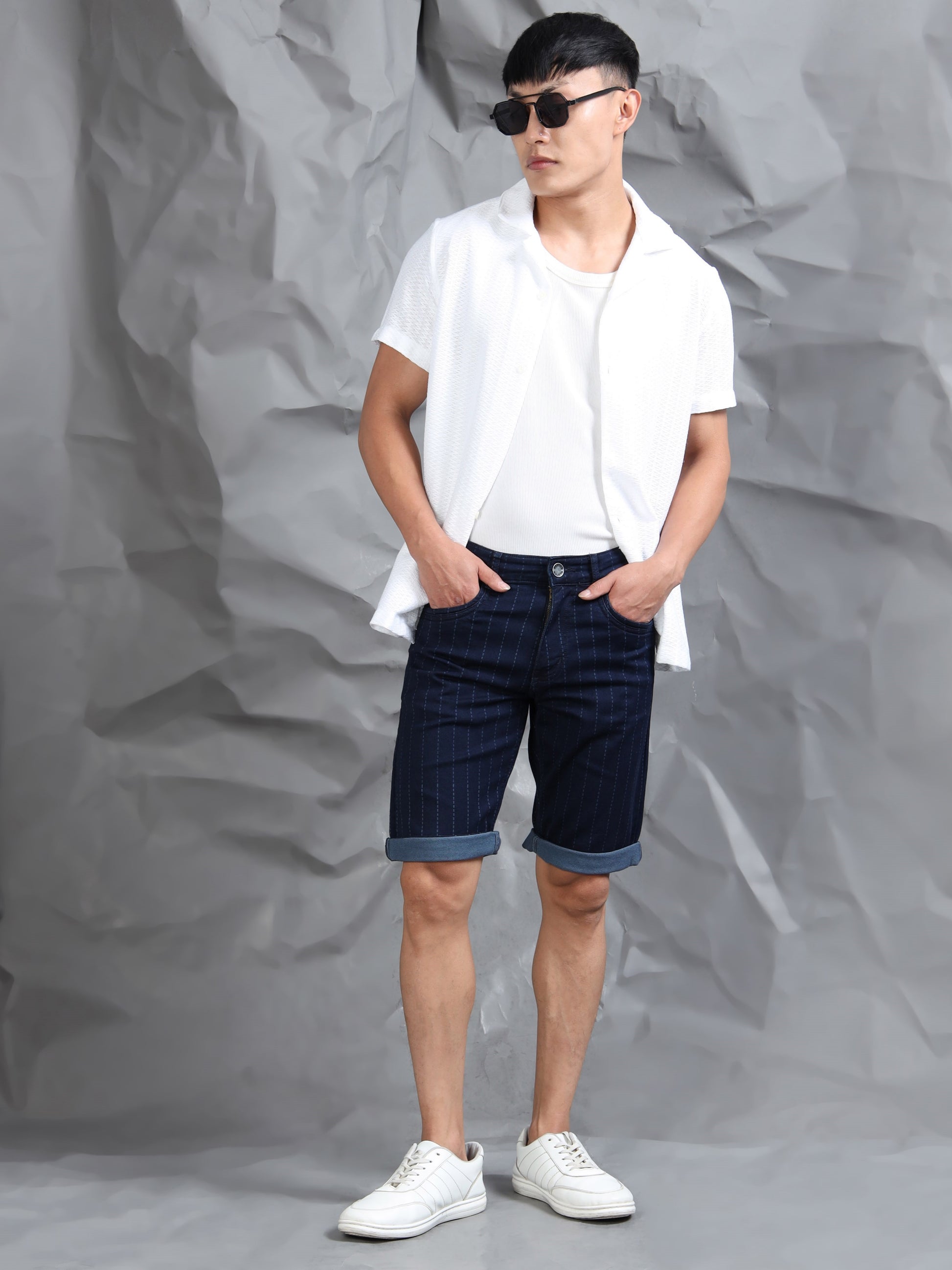 Refresh your casual style with Beevee Men’s Casual Striped Cotton Blend Denim Shorts. Designed with a cotton blend denim and lycra fabric, these shorts offer comfort, flexibility, and long-lasting wear. The laser-printed striped design adds a stylish touch, while the mid-rise waist and regular fit ensure all-day ease. Finished with a knee-length cut and 5 practical pockets, these shorts perfectly combine style and functionality, making them suitable for outings, travel, or relaxed weekends.