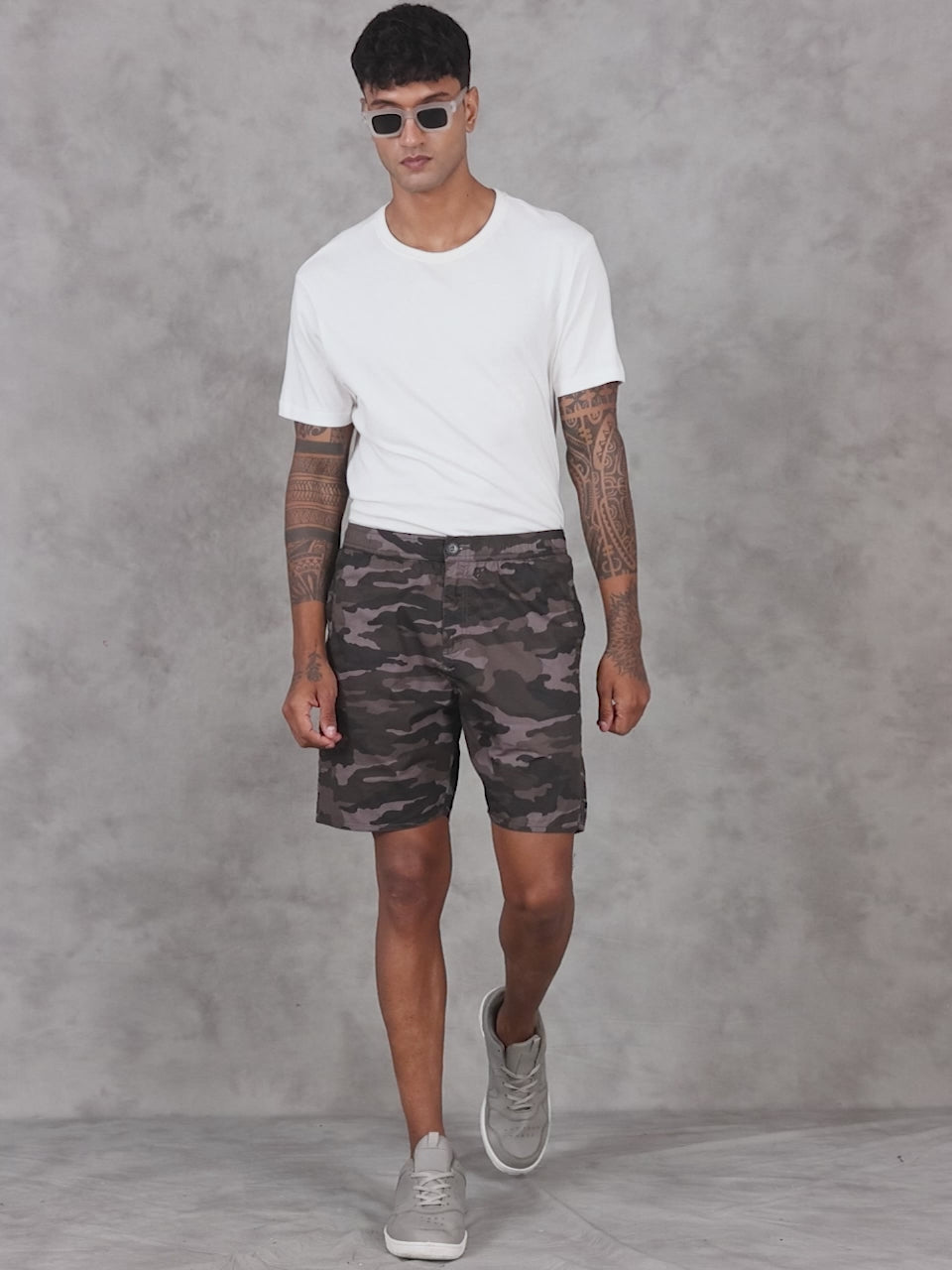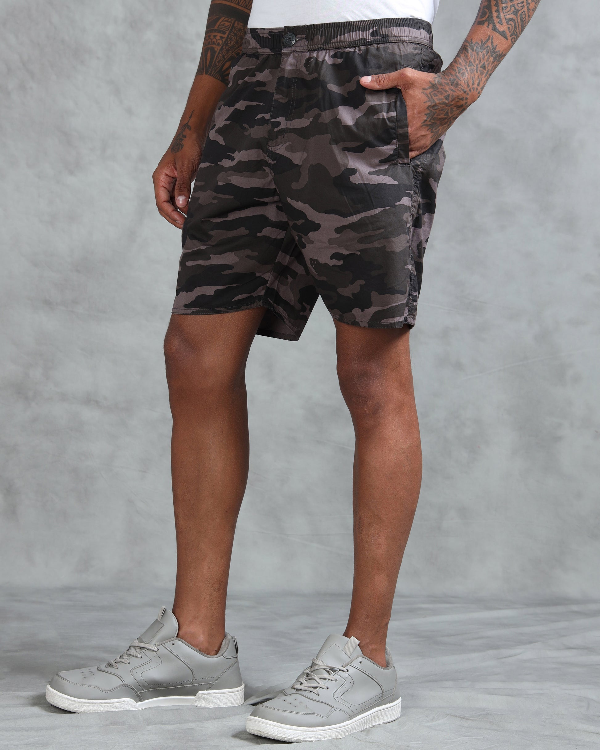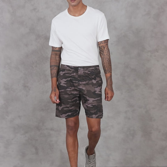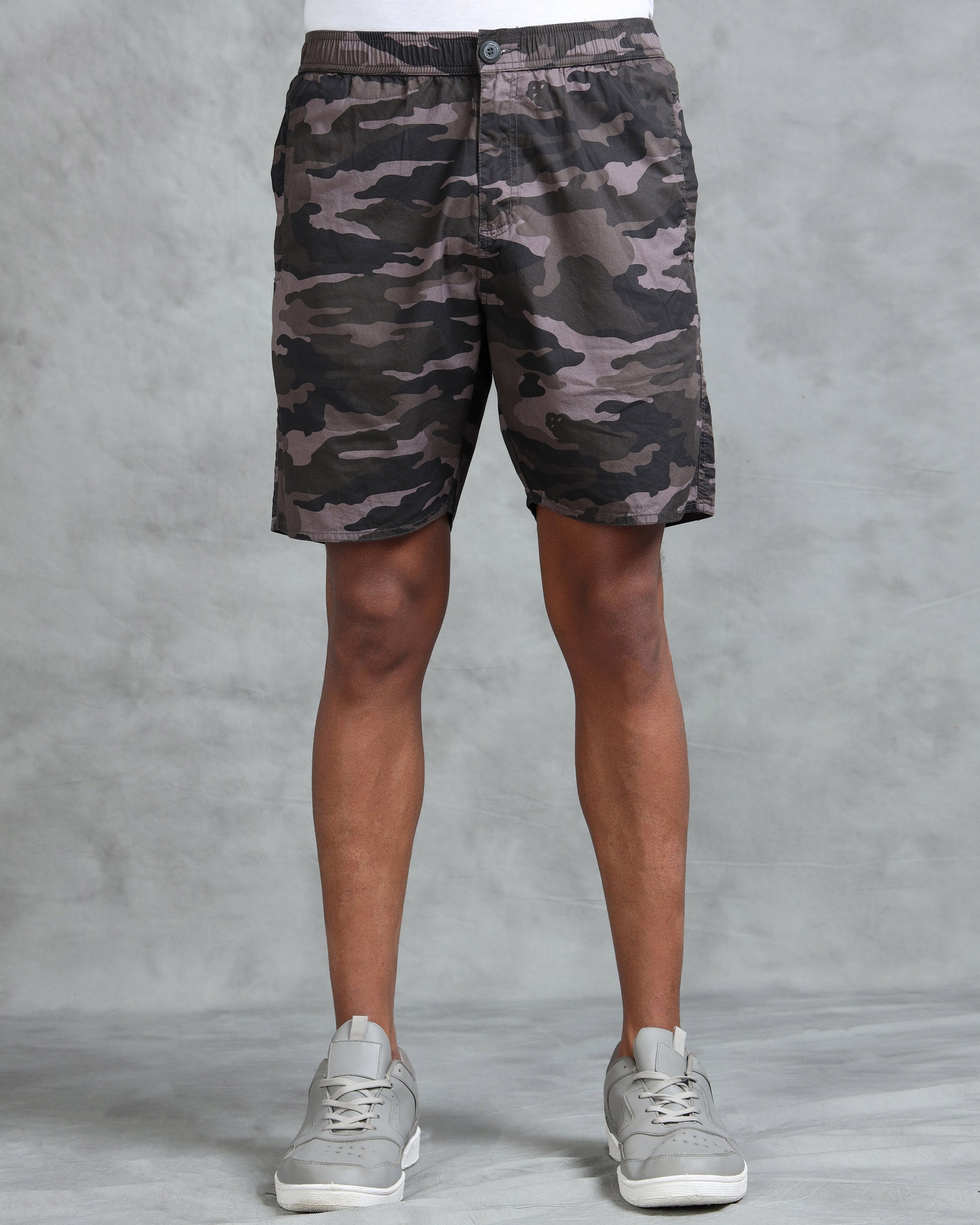 Men Grey Military Camouflage Printed Shorts
