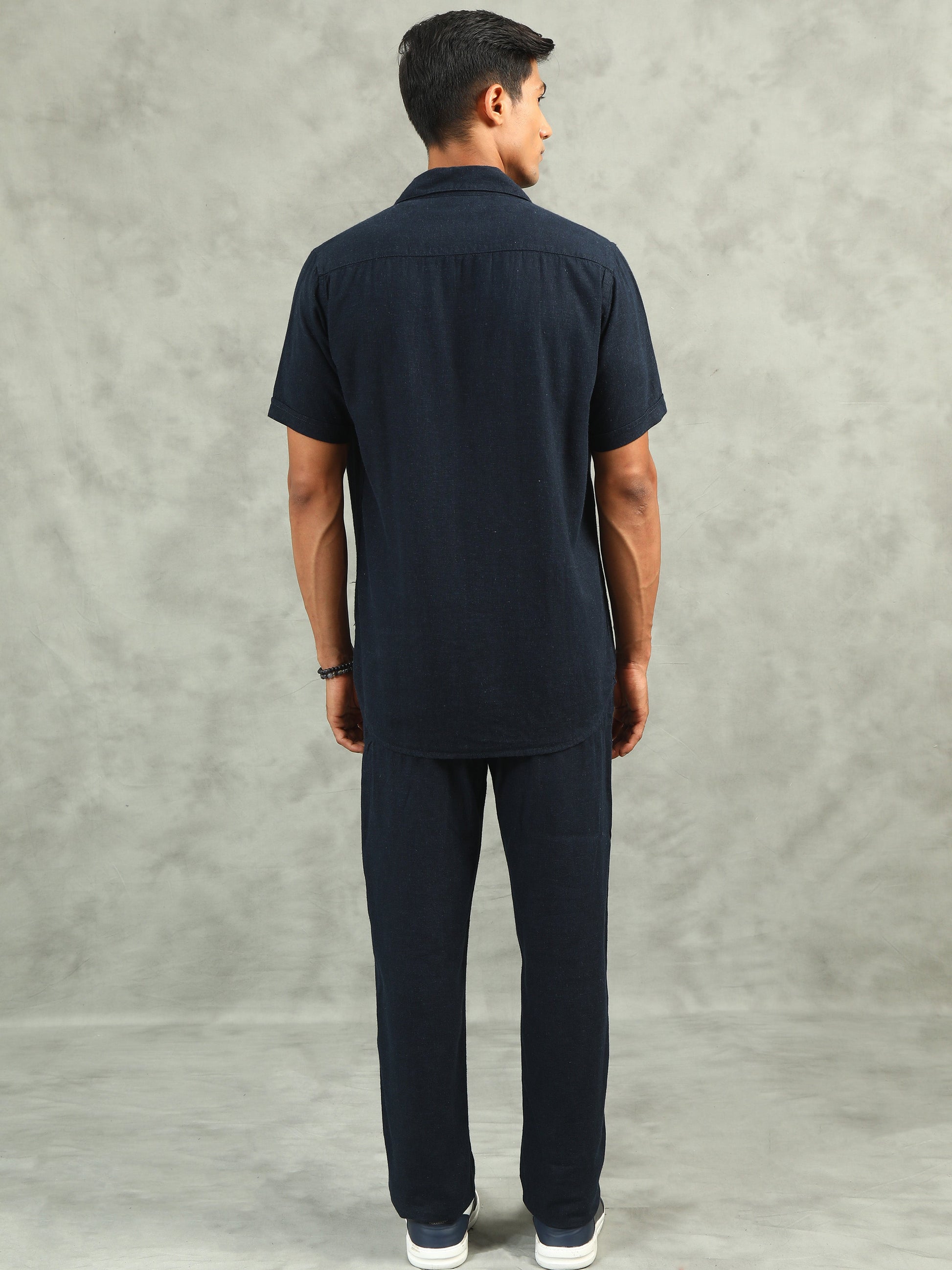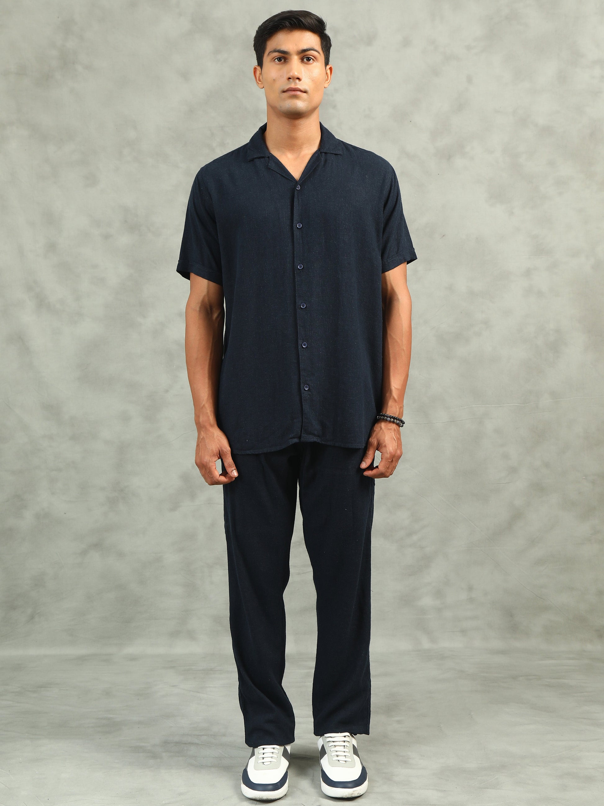 Navy Regular Fit Solid Half Sleeve Co-Ord Sets