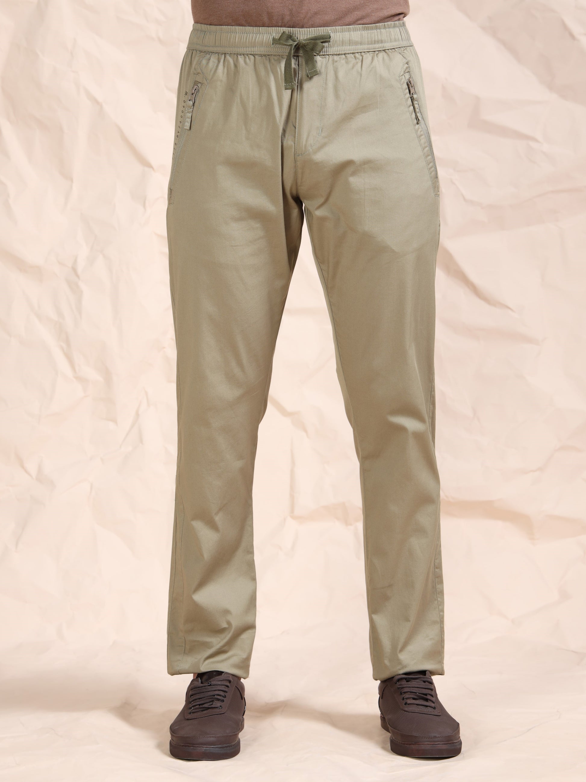 Olive Regular Fit Cotton Lycra Solid Pyjama