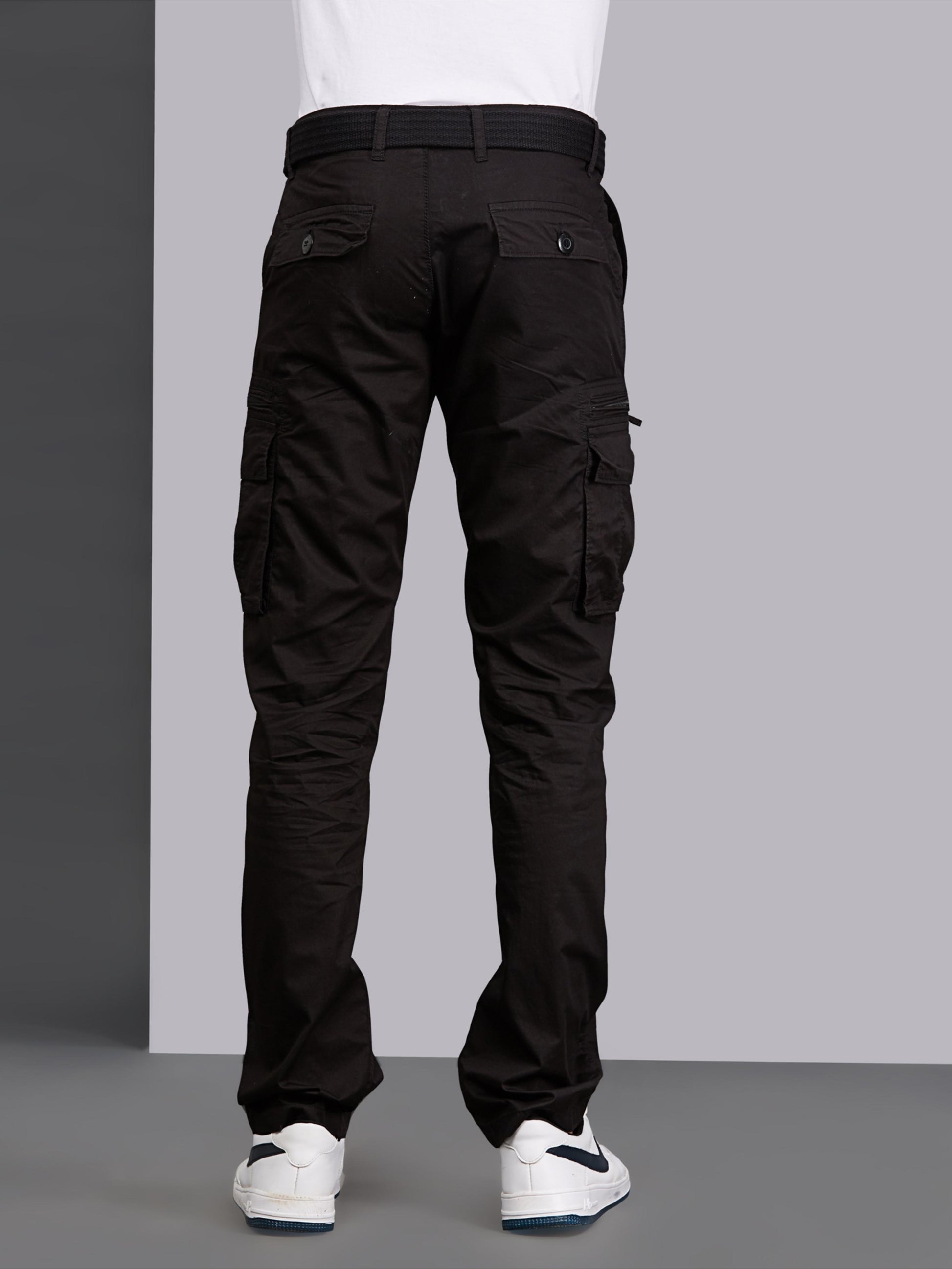 Slim fit cargo pants feature multiple streamlined pockets, offering a sleek look without sacrificing practicality. Spacious side cargo pockets provide ample storage, while additional back and side pockets enhance functionality.