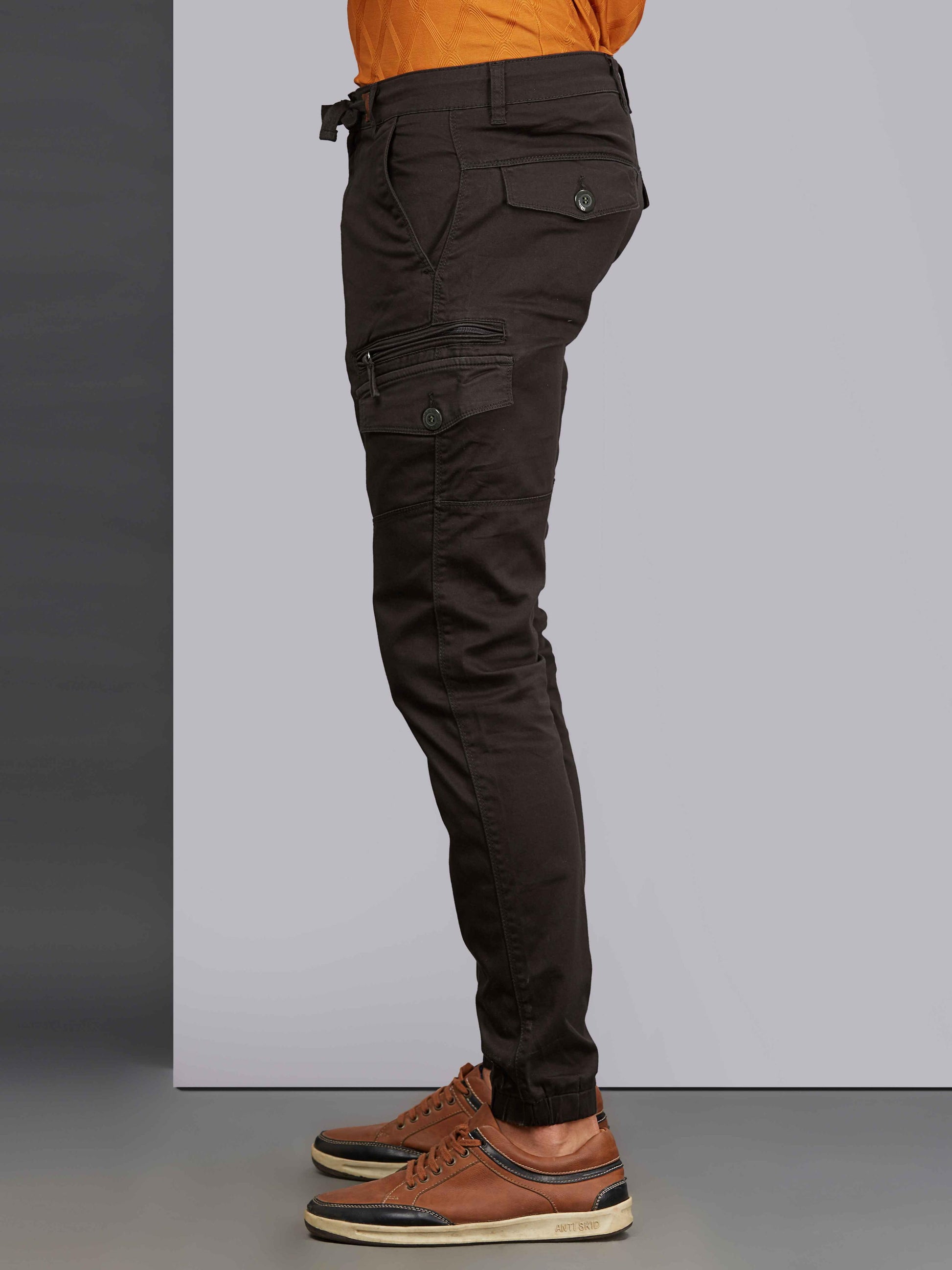 Slim fit cargo pants feature multiple streamlined pockets, offering a sleek look without sacrificing practicality. Spacious side cargo pockets provide ample storage, while additional back and side pockets enhance functionality.