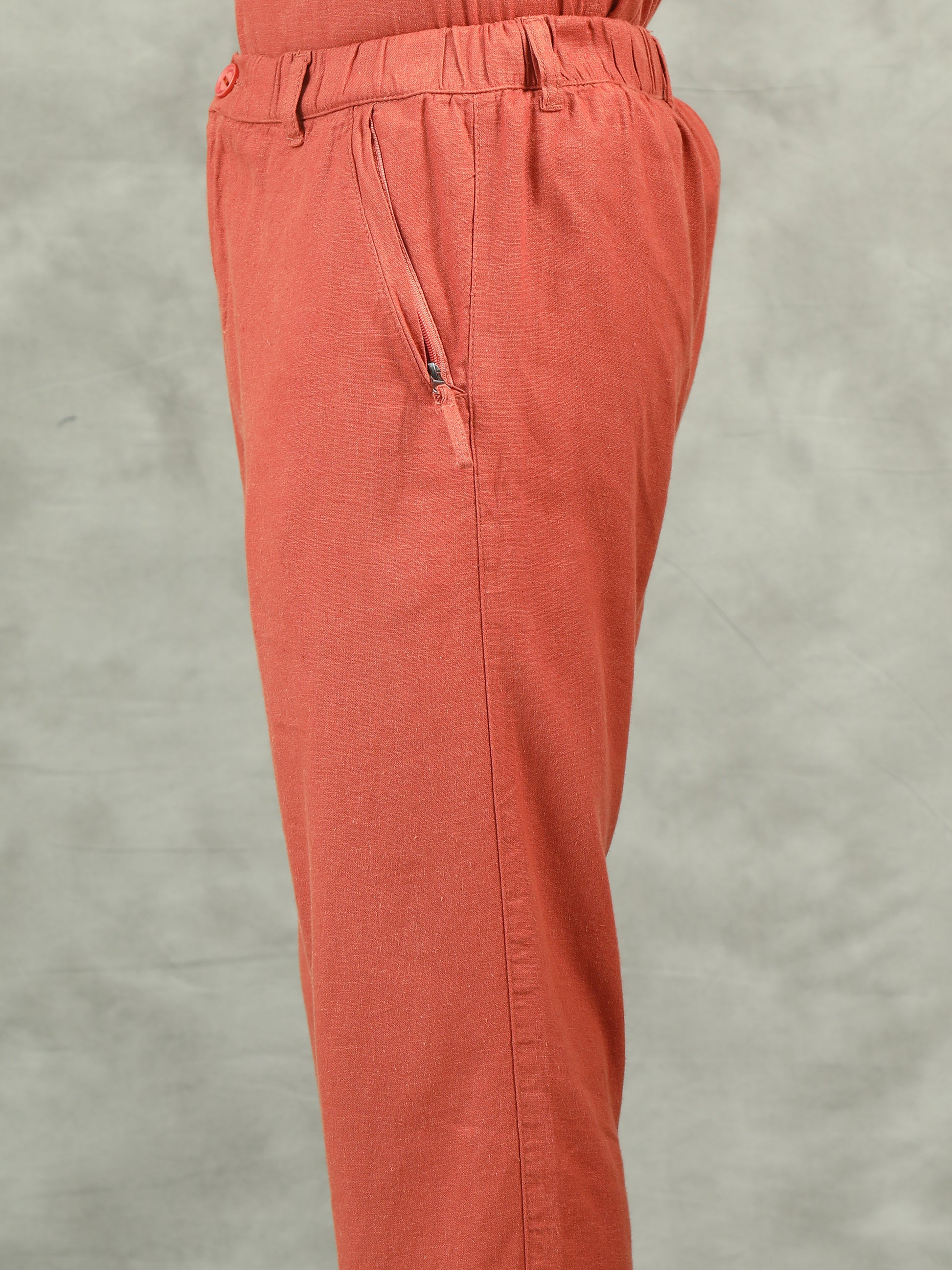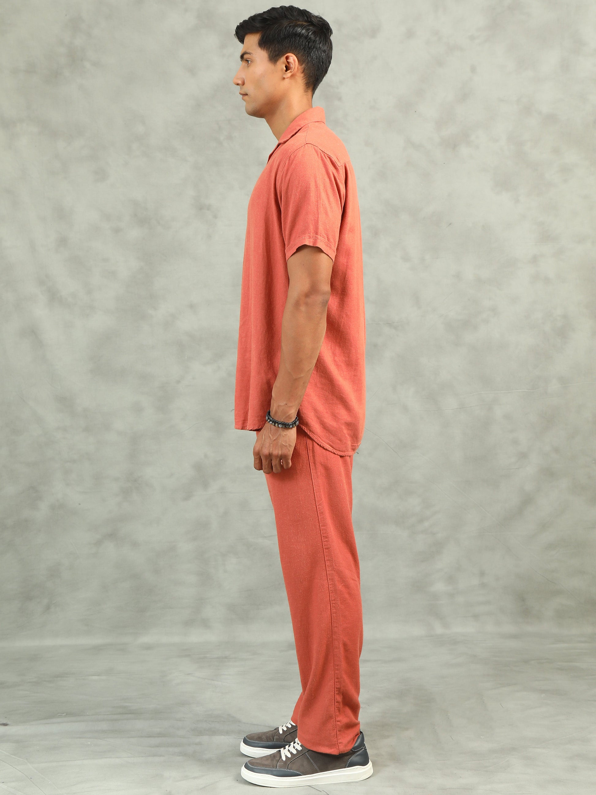Rust Regular Fit Solid Half Sleeve Co-Ord Sets