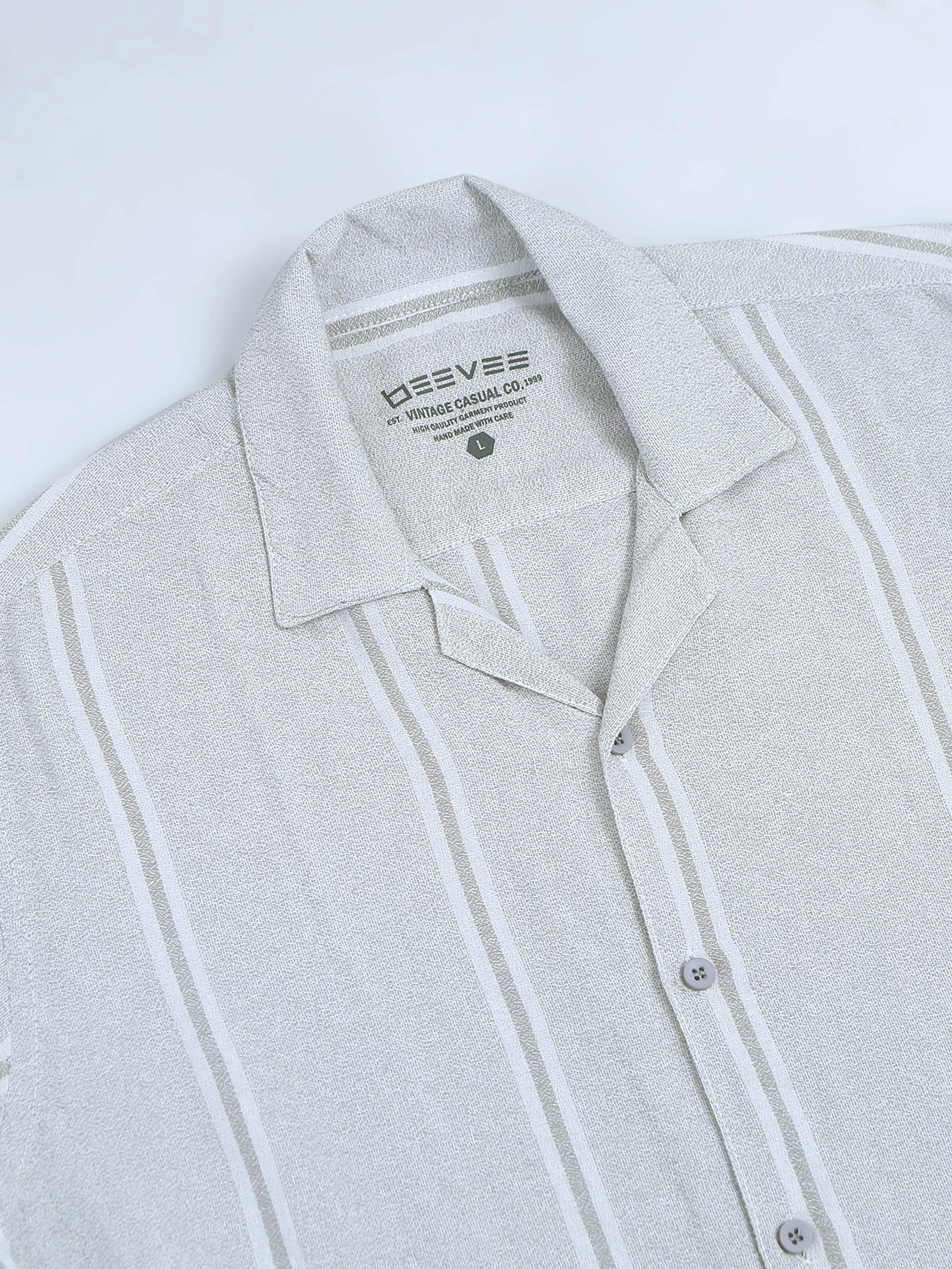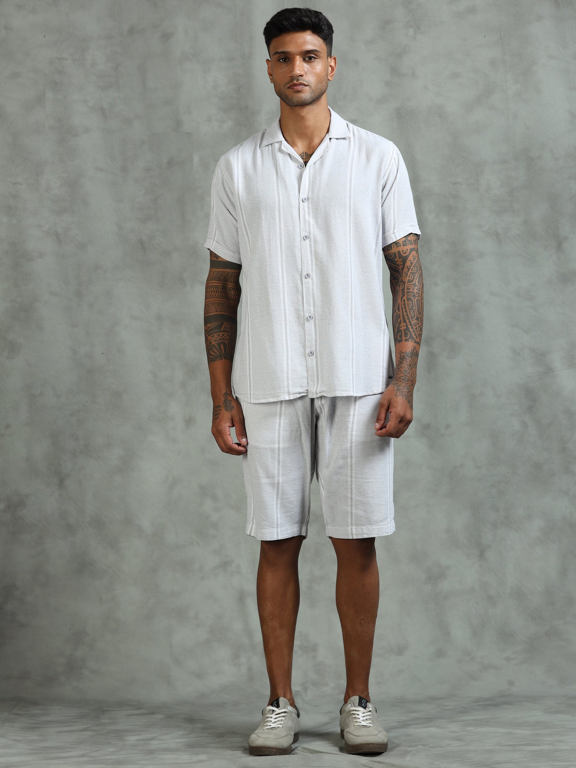 Striped Grey Regular Fit Knee-Length Casual Co-ord Set
