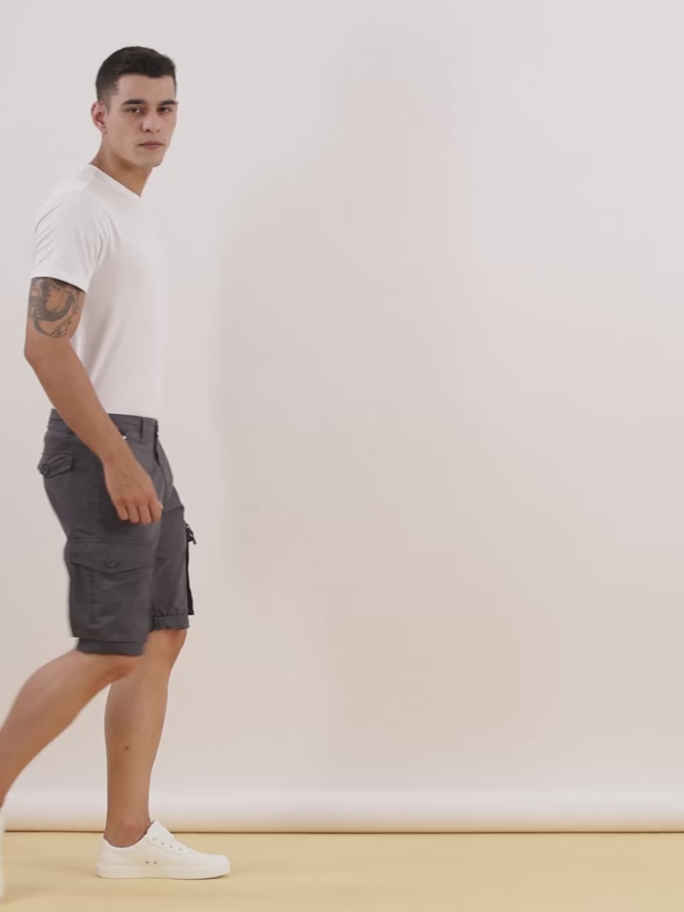 Zip Pocket Stretchable M Grey Cargo Shorts